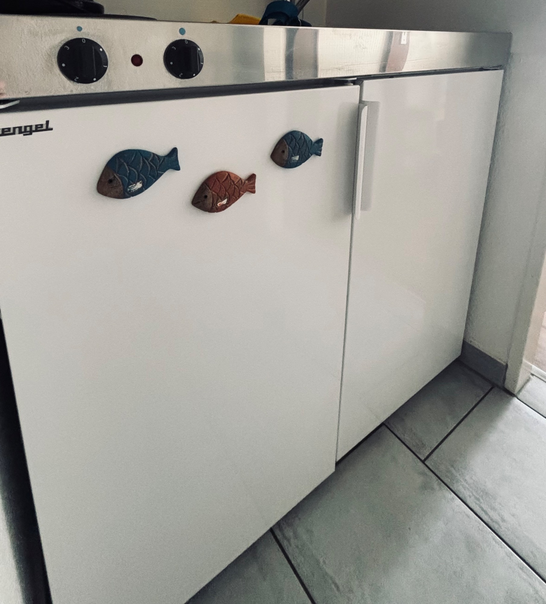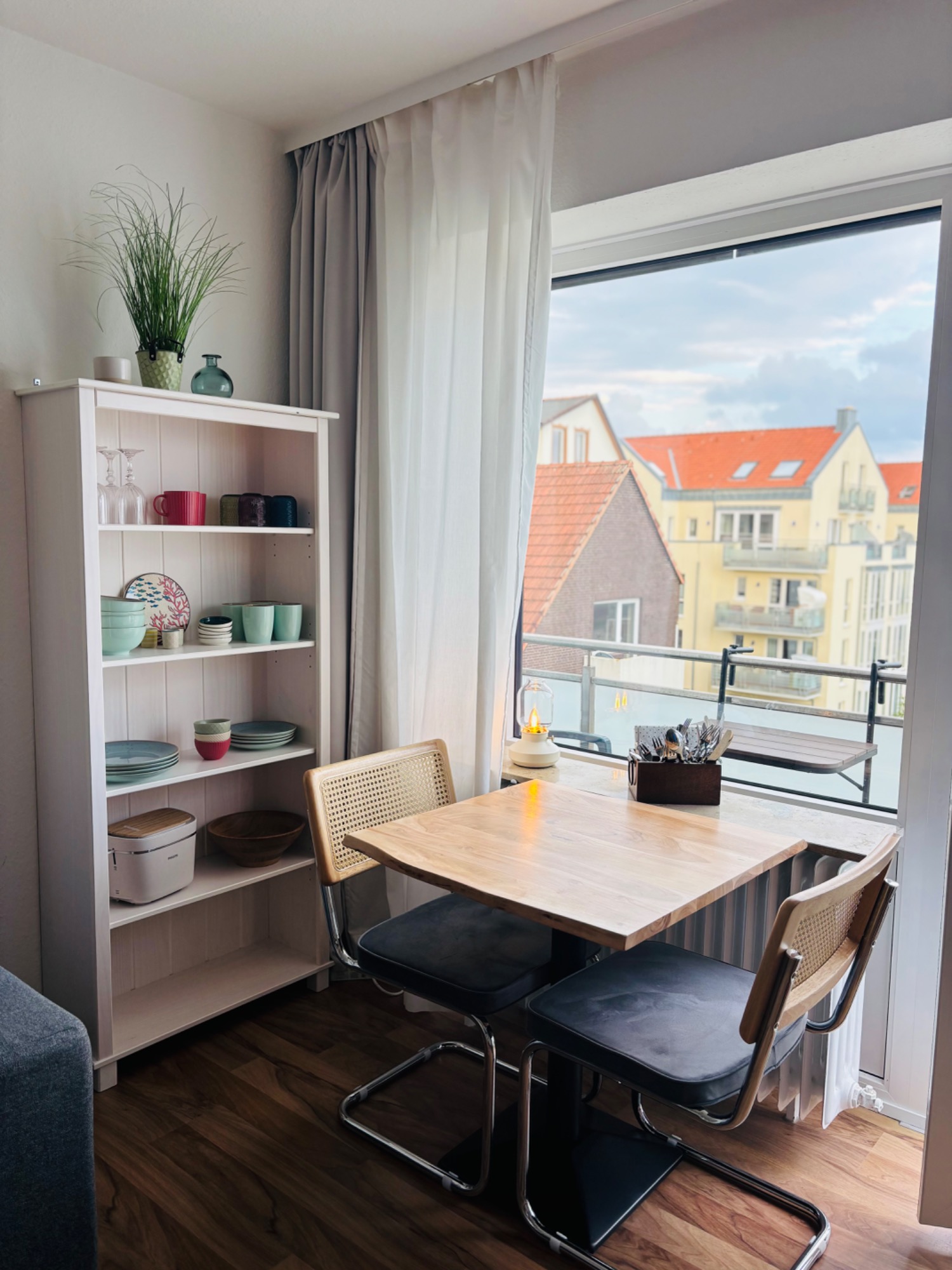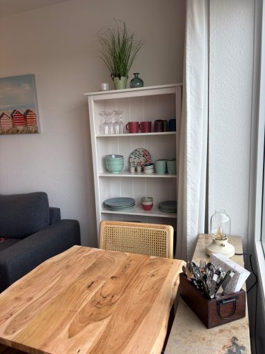 In der Kochnische der Ferienwohnung findet ihr ein 2-flammiges Kochfeld, einen Kühlschrank mit Gefrierfach, einen Wasserkocher, einen Toaster, eine Mikrowelle und eine Heißluftfritteuse. Ihr habt die Wahl zwischen Filterkaffee oder einem Kaffee aus der Nespressomaschine.